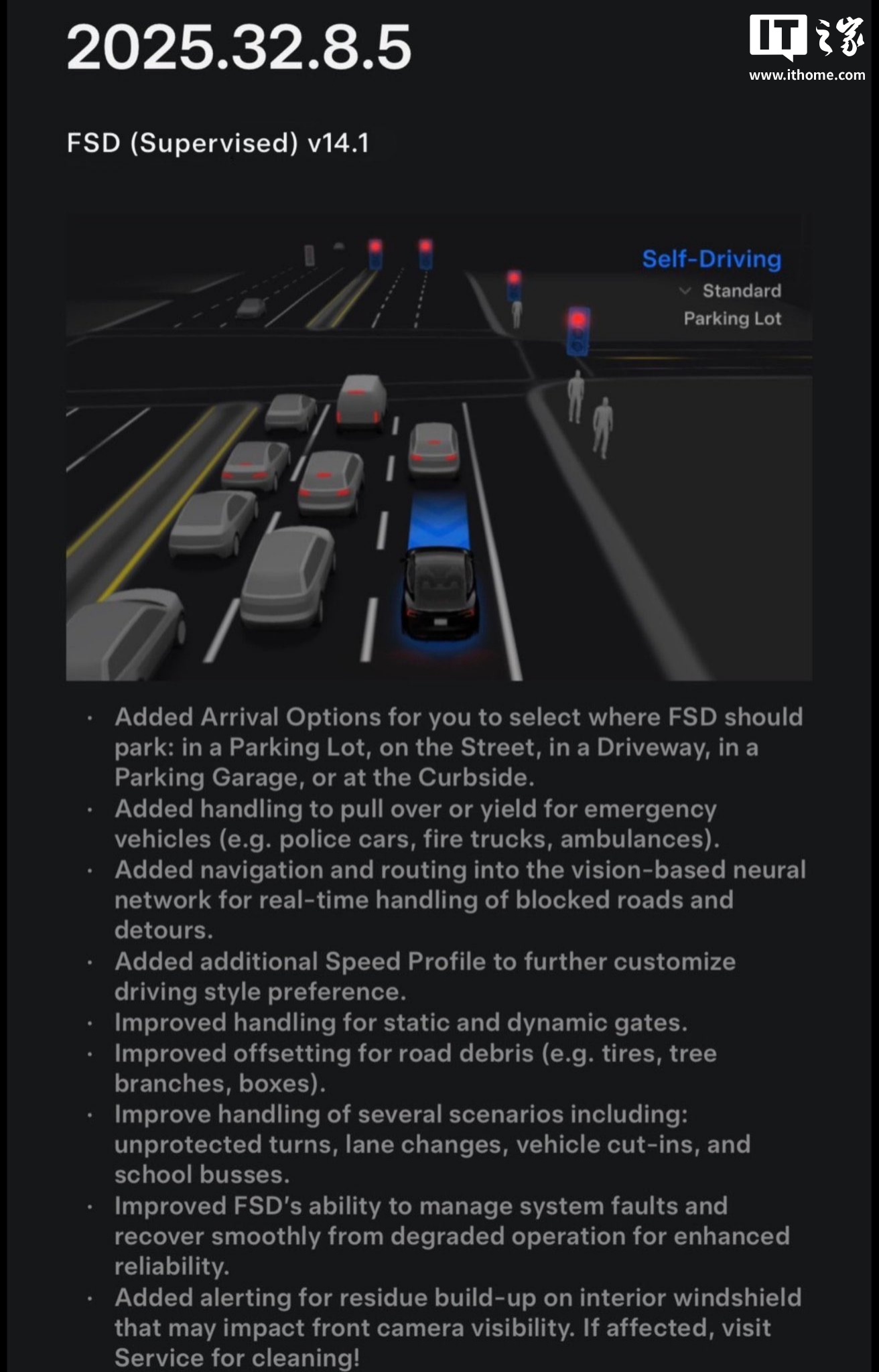 后续计划特斯拉表示,未来 FSD 版本将进一步改进“行驶平顺性”和“停车精准度”,并持续优化“到达位置选项”和“停车质量”。