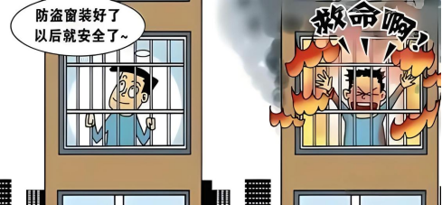 2023年4月17日,福建福州市台江区一居民楼7楼,住户家中发生火灾,明火从房内猛烈燃烧,屋内人员从窗户逃生,因有防护栏(防盗窗)逃生未果,火灾致两人不幸身亡。
